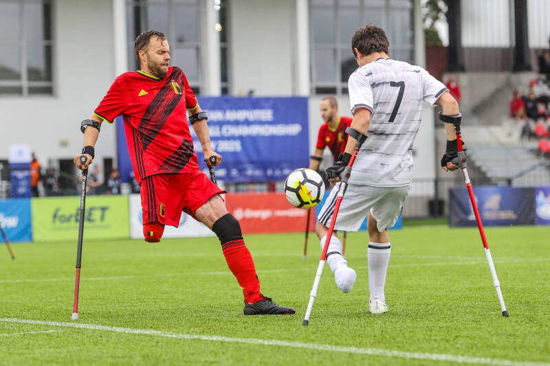 Eerlijk, mensen met een beenamputatie op krukken achter een bal zien lopen, is geen alledaags zicht.