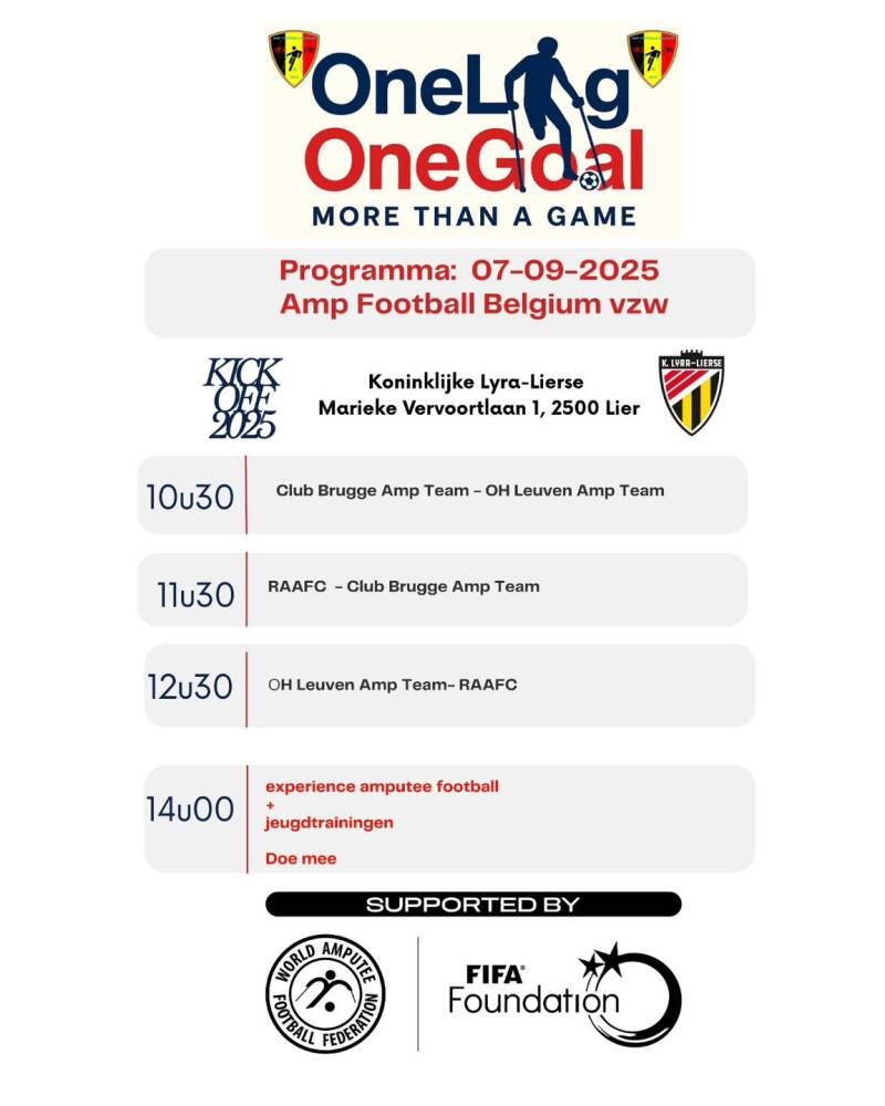 Zondag 7 september was er eentje om in te kaderen! Onder een stralende zon mocht One Leg One Goal – More Than A Game meer dan 1000 enthousiaste deelnemers en supporters verwelkomen voor de grote kick-off van ons project in het teken van de WAFF Grant 2025.
